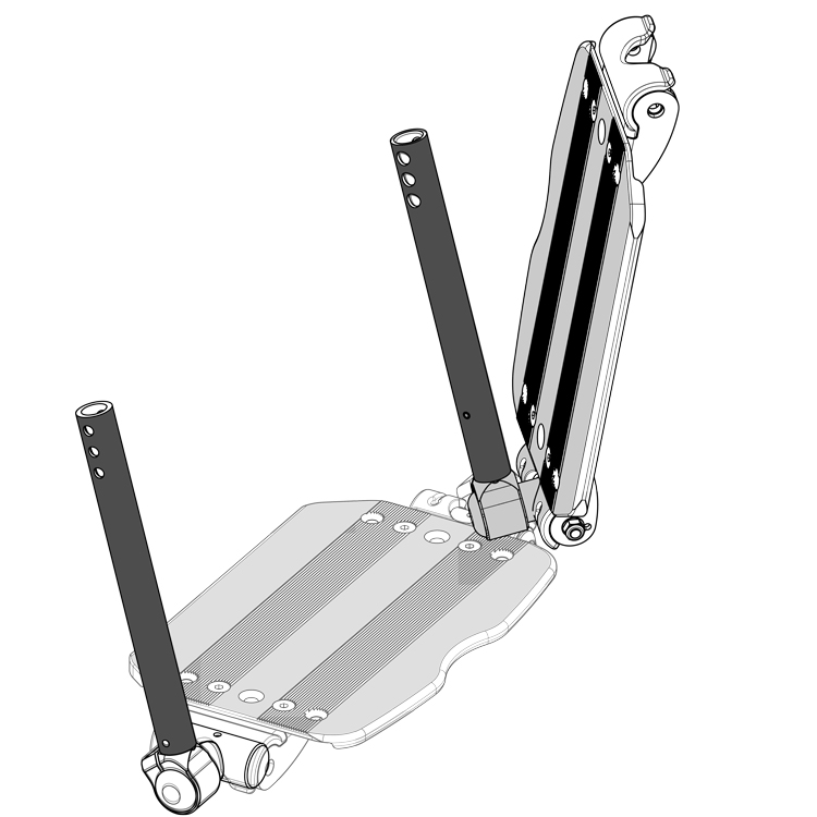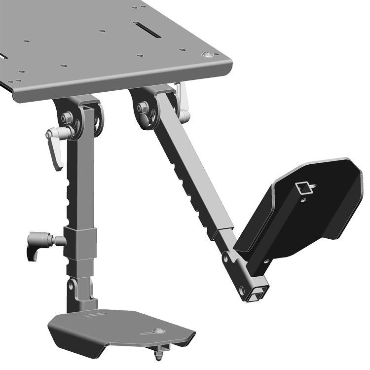 Sollte keine unserer Beinstützen für den Rollstuhl des Anwender und deren Therapie geeignet sein bieten wir auch optional eine Universalbeinstützenaufnahme an. An diese Beinstützenaufnahme kann eine universelle Beinstütze von einem anderen Anbieter montiert werden.