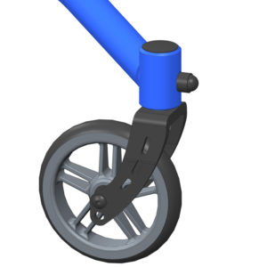 Mit der Verriegelung der Lenkradspur kann der Rollifahrer nur noch geradeaus fahren, da die Lenkräder festgestellt sind. Im Gegensatz zur Spurfixierung löst sich die Verriegelung nicht von alleine, der Verriegelungsbolzen muss getätigt werden, um die Lenkräder wieder frei bewegen zu können.