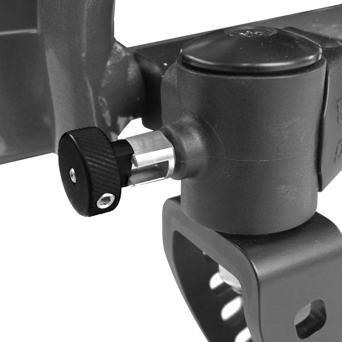 Mit der Verriegelung der Lenkradspur kann der Rollifahrer nur noch geradeaus fahren, da die Lenkräder festgestellt sind. Im Gegensatz zur Spurfixierung löst sich die Verriegelung nicht von alleine, der Verriegelungsbolzen muss getätigt werden, um die Lenkräder wieder frei bewegen zu können.
