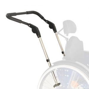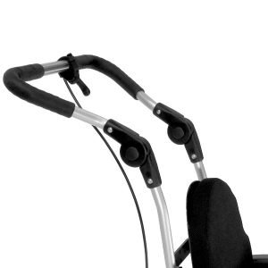 Der Schiebebügel mit Kunststoffgelenk ist dank seiner Arretierungsknöpfe kinderleicht winkelverstellbar sowie komplett abklappbar und höhenverstellbar.