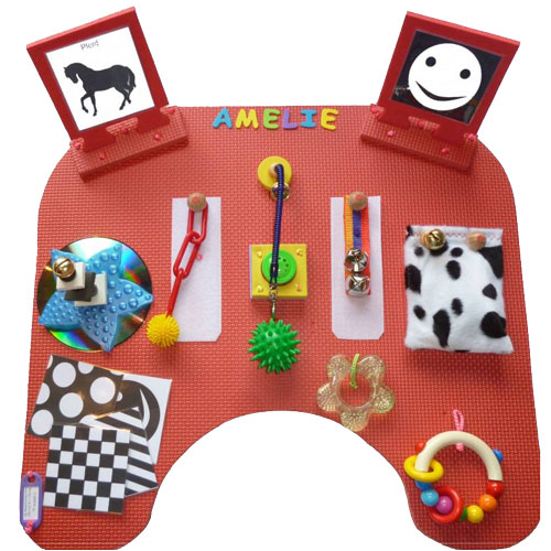 Unsere Therapietische können auch mit der Kommunikationshilfe Topper ausgestattet werden. Topper sind verschiedene Interaktionselemente, die individuell auf jeden Therapietisch und die Fähigkeiten und Bedürfnisse des Anwenders angepasst werden. Weitere Informationen finden Sie unter: www.nickylinedesign.de