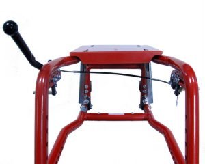 - Lockable knee lever brake A latch is used to lock the brake standing still or while driving.