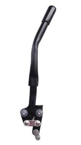 Cranked brake lever extension: This version extends the brake lever by 12 cm. The extension is slightly bent towards the seat and wheelchair user, and it is available with a standard end cap, ball knob, or golf ball.