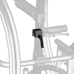 Falls kein Therapietisch gewählt wurde, muss ein zusätzlicher Halter für den Handbremshebel an der Mittelsäule befestigt werden. Dieser ist höhenverstellbar.