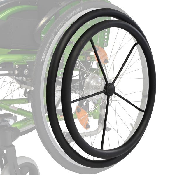 - Profile wheels: Profile wheels have a built in handrim. To better your gripping comfort you can equip it with an ergo-inlay or a silicone cover.