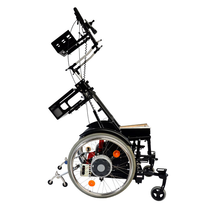 To be cared for in a facility, a way had to be made possible for the user to leave the house. To date, the family had only a non-mobile care device for their home. Since numerous medical devices are required for the user’s everyday care, a solution was needed that would accommodate all the equipment necessary. The numerous devices made the wheelchair very heavy as well, which is why an electric pushing aid was urgently needed, this too needed to be accommodated.