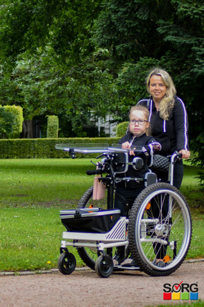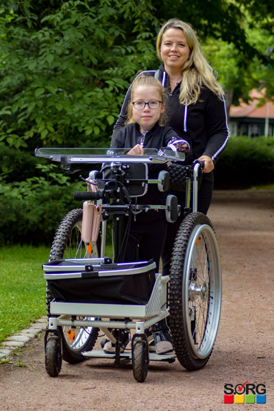 With her new standing wheelchair, she can now easily transport her backpack and other things. The large transport box offers enough space for this. The standing driver is on duty every day and school attendance or an excursion is finally no longer a difficult adventure.