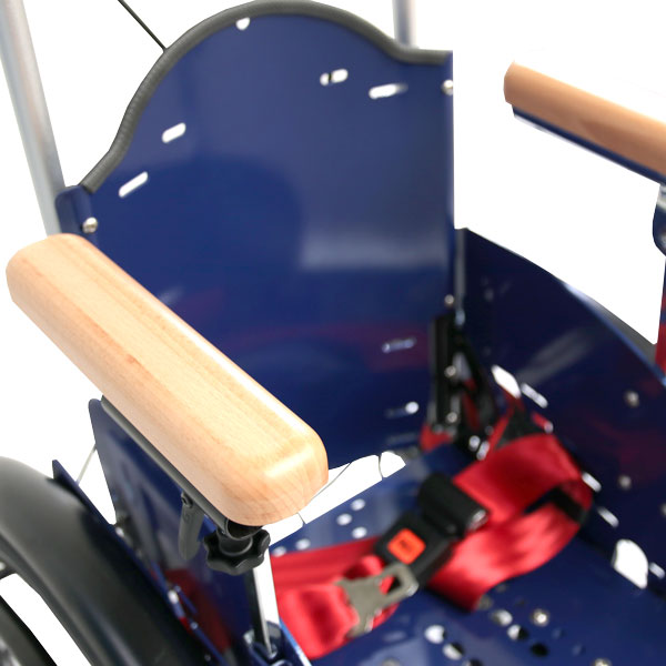 The armrest of the wheelchair should not be made of the standard arm cushion, as they taste sweet on contact with saliva and stimulate nibbling the armrest. In spite of everything, the armrests should not carry too much weight and should feel comfortable when putting on the arms. In addition, the design should continue to fit the wheelchair.