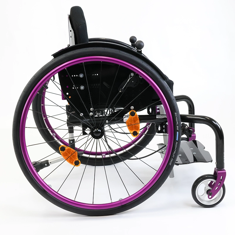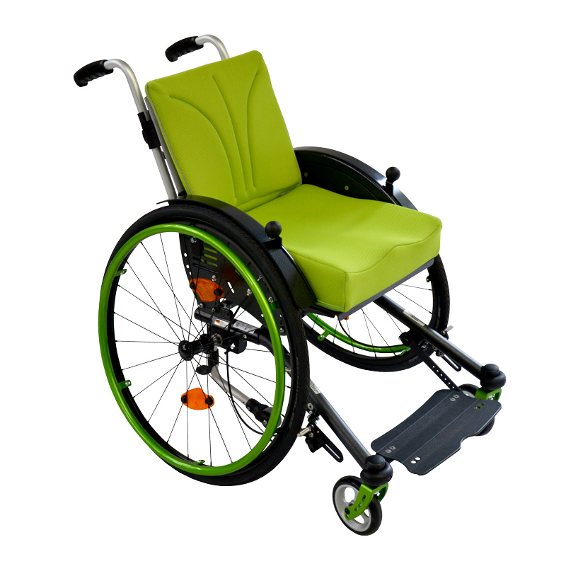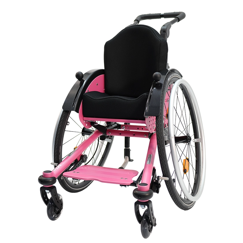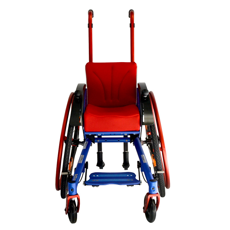 Thanks to its lightweight construction and smooth running, the Mio (design 2018) is always child’s play to use in everyday life and therapy. The upright posture is optimally stabilised by the anatomically shaped seat and back without hindering the child’s natural urge to move. And thanks to the flexibility of the seat-back system, the optimum shoulder-drive wheel position for a low-fatigue gripping point can be adjusted in just a few simple steps. This allows the child to playfully and completely unconsciously train its entire musculature while exploring its environment in the wheelchair with curious eyes.