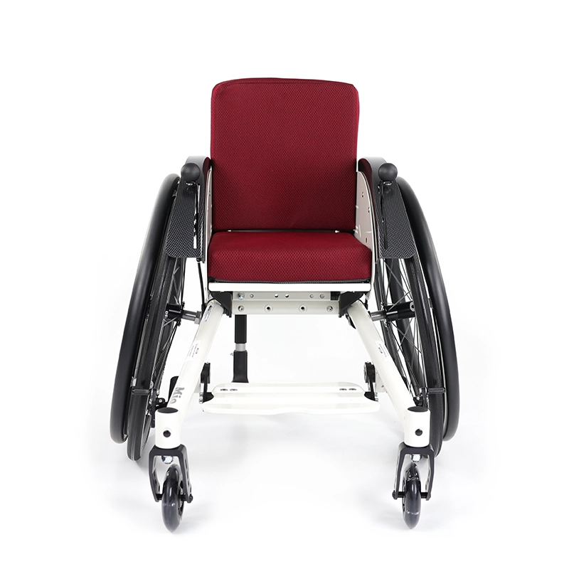 Leichter Kinderrollstuhl in der Farbe schwarz rau und bordeauxrot mit Carbonausstattung