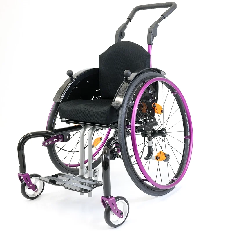 Kinderrollstuhl Mio mit Kopfstütze, Pelotten und Schiebebügel, Aktivrollstuhl für Kinder