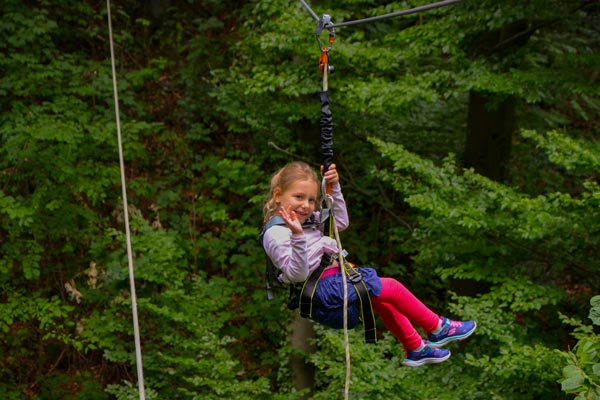 Da Hanna bewiesen hat, dass Sie eine mutige kleine Abenteurerin ist, geht es auf zum „Flying Fox“. Papa hat schon zugestimmt und wird seine eigene Höhenangst wohl überwinden müssen. Aber was macht man nicht alles für sein Kind.