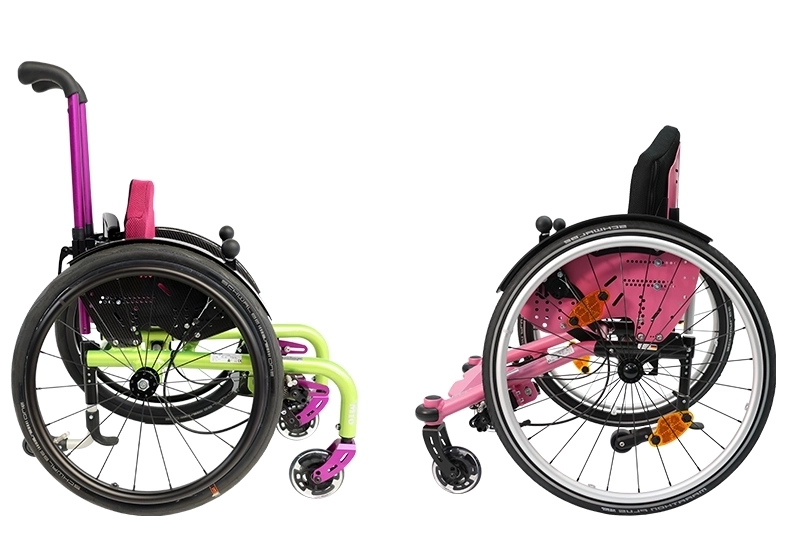 Genau wie bei unserem Carbon Rollstuhl Mio Carbon und dem Kantelrollstuhl Mio Move gibt es auch beim Mio zwei Rahmenvarianten. Warum? Die beiden unterschiedlichen Rahmenversionen (Stier- und Retro-Rahmen) haben nicht nur Designfunktion, sondern unterstützen auch unterschiedliche therapeutische Ansätze: Der Stier-Rahmen bietet dank der offenen Rahmenform mehr Beinfreiheit wodurch z.B. seitliches ein- und ausgestiegen ermöglicht werden kann. Zudem ist ein weites Heranfahren an Tische oder andere Gegenstände möglich. Der Retro-Rahmen hingegen kann als Einstiegshilfe verwendet werden (z.B. durch Benutzen des oberen Rahmens als Haltegriff) und bietet zusätzlich eine seitliche Führung. Besprechen Sie mit Ihrem Arzt oder Therapeuten, welche Rahmenform für die Therapie und den Transfer des Kindes im Alltag die beste Lösung ist.